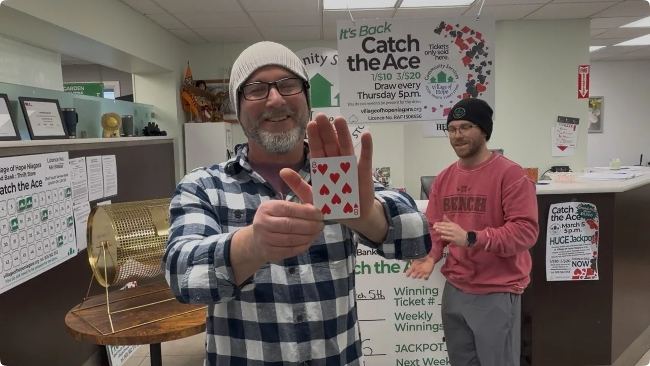 And now... the results of our Week 8 Catch The ACE Lincoln VoHN drawn at 5PM, Thursday March 5, 2026. We're grateful for everyone who purchased tickets for tonight's draw. The proceeds of our raffle draw support the programs of Village of Hope Niagara, helping our neighbours in need in Lincoln.